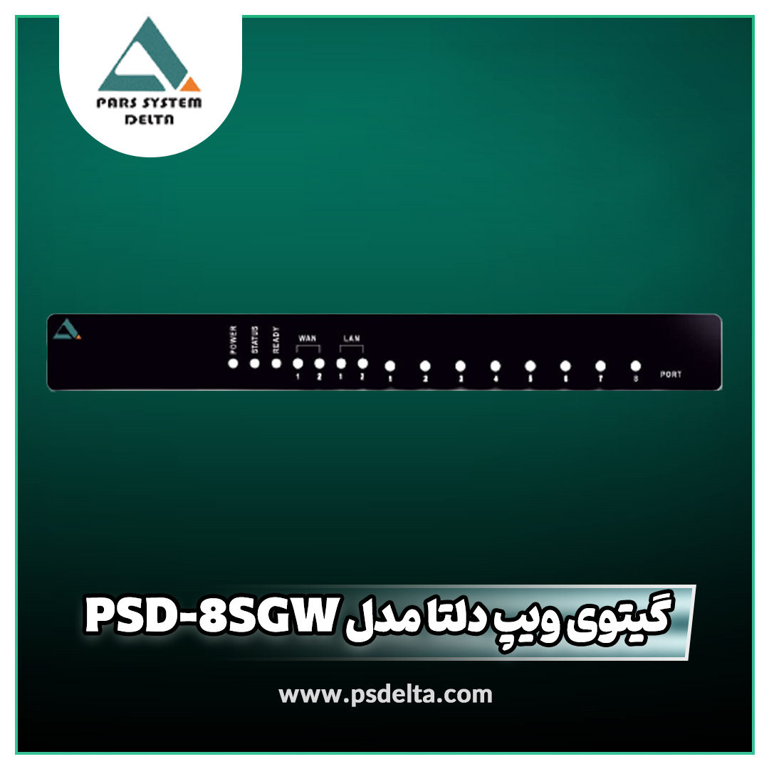 گیت وی ویپ 8FXS، تا 8 پورت ظرفیت دارد. گیتوی های سری 8 دارای ظرفیت های 4 و 8 پورت هستند. گیتوی 8 پورت FXS دلتا دارای تراشه سخت افزاری حذف اکو است که باعث افزایش کیفیت صدا می گردد. گیتوی PSD-8SGW توان ایجاد 8 تماس همزمان را دارد و از پروتکل های SIP و H.323 پشتیبانی می نماید، دارای 2 پورت LAN و 2 پورت WAN به منظور سهولت در ارتباطات درون شبکه ای است. تنظیمات گیت وی ویپ 8 پورت FXS از طریق وب انجام می پذیرد و سعی شده است تا محیطی ساده و کاربر پسند ارائه نماید.