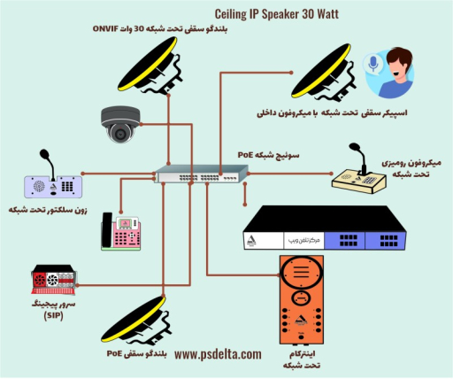 ویژگیهای کلیدی بلندگو سقفی تحت شبکه دلتا (30W PoE)