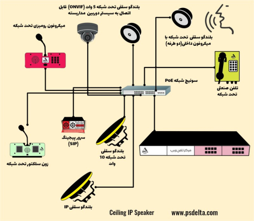 اسپیکر سقفی تحت شبکه (IP Ceiling Speaker) یکی از مدرن ترین تجهیزات انتشار صدا در سیستمهای اعلام و پیجینگ مبتنی بر شبکه است. این بلندگوها با تبدیل انرژی الکتریکی به انرژی صوتی از طریق درایورهای مکانیکی، صدایی شفاف، یکنواخت و قابل کنترل ارائه می کنند. در میان انواع مدلها، اسپیکر سقفی تحت شبکه 5 و 10 وات پارس سیستم دلتا برای نصب در فضاهای اداری، مراکز خرید، سالنها، راهروها و ساختمانهای سازمانی بهترین عملکرد را ارائه می دهد. این اسپیکرها با نامهای اسپیکر سقفی SIP یا اسپیکر سقفی VoIP نیز شناخته می شوند و همگی به یک گروه از اسپیکرهای هوشمند قابل مدیریت از طریق شبکه اشاره دارند.